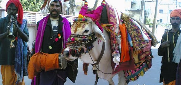It is also very common to find a decorated bull and its handler parading on the streets of Bangalore. The appearance of the bull is seen as a good omen.