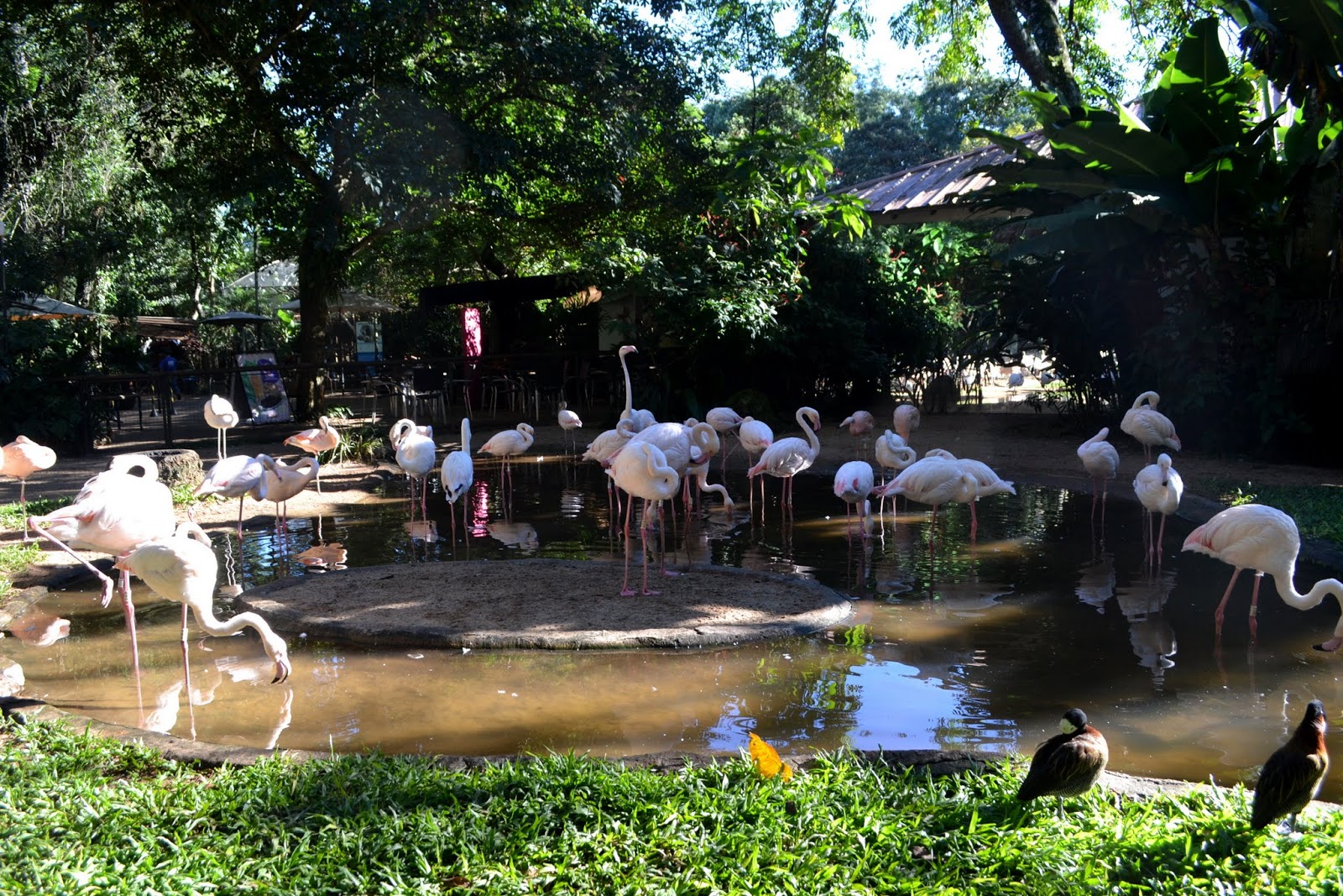 Flamingos gather here by the hundreds to drink the mineral rich water