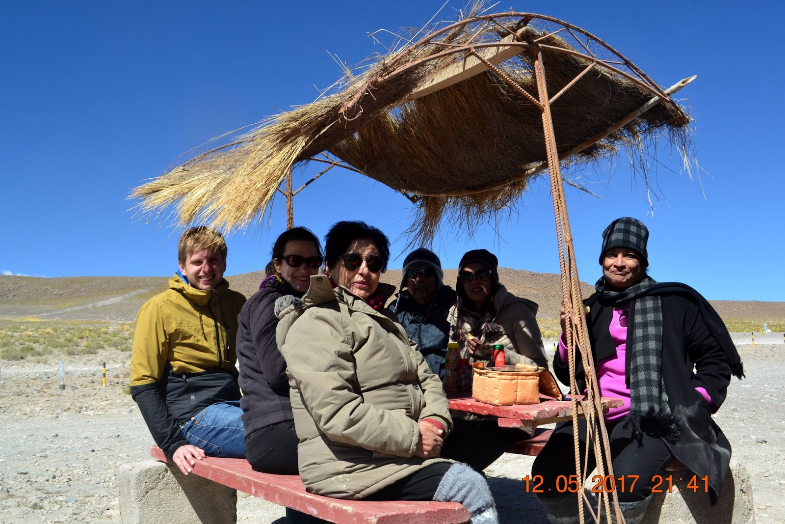 This desert is surrounded for many volcanoes…like dormant ones, extinct ones . We visited Sol de Mañana, meaning Morning Sun in Spanish, which is a geothermal field in south-western Bolivia. It stands at a height of 16,600ft. The short stay was punctuated for me when I started to bleed in the gums. The guide had to rush me down to lower altitude to stop the bleeding.